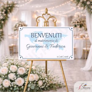 Accogli i tuoi invitati con un pannello di benvenuto che parla di voi e rende speciale l’ingresso alla location!