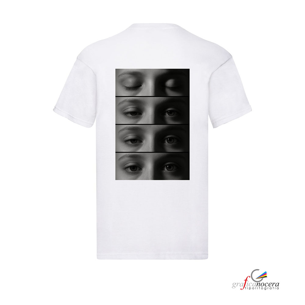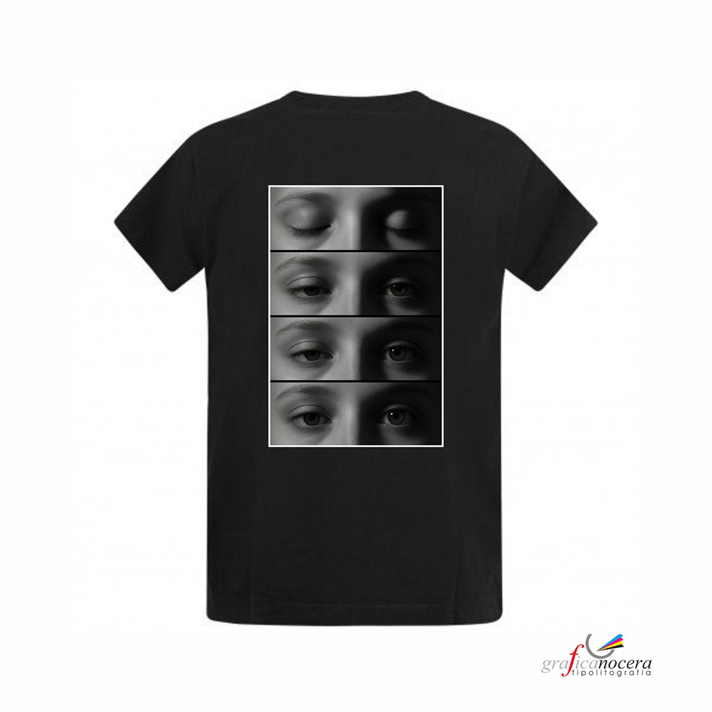 Mostra il tuo amore in modo originale con una t-shirt personalizzata con gli occhi della tua fidanzata, stampata sul retro con un effetto artistico che racconta la vostra storia attraverso uno sguardo 👀💖