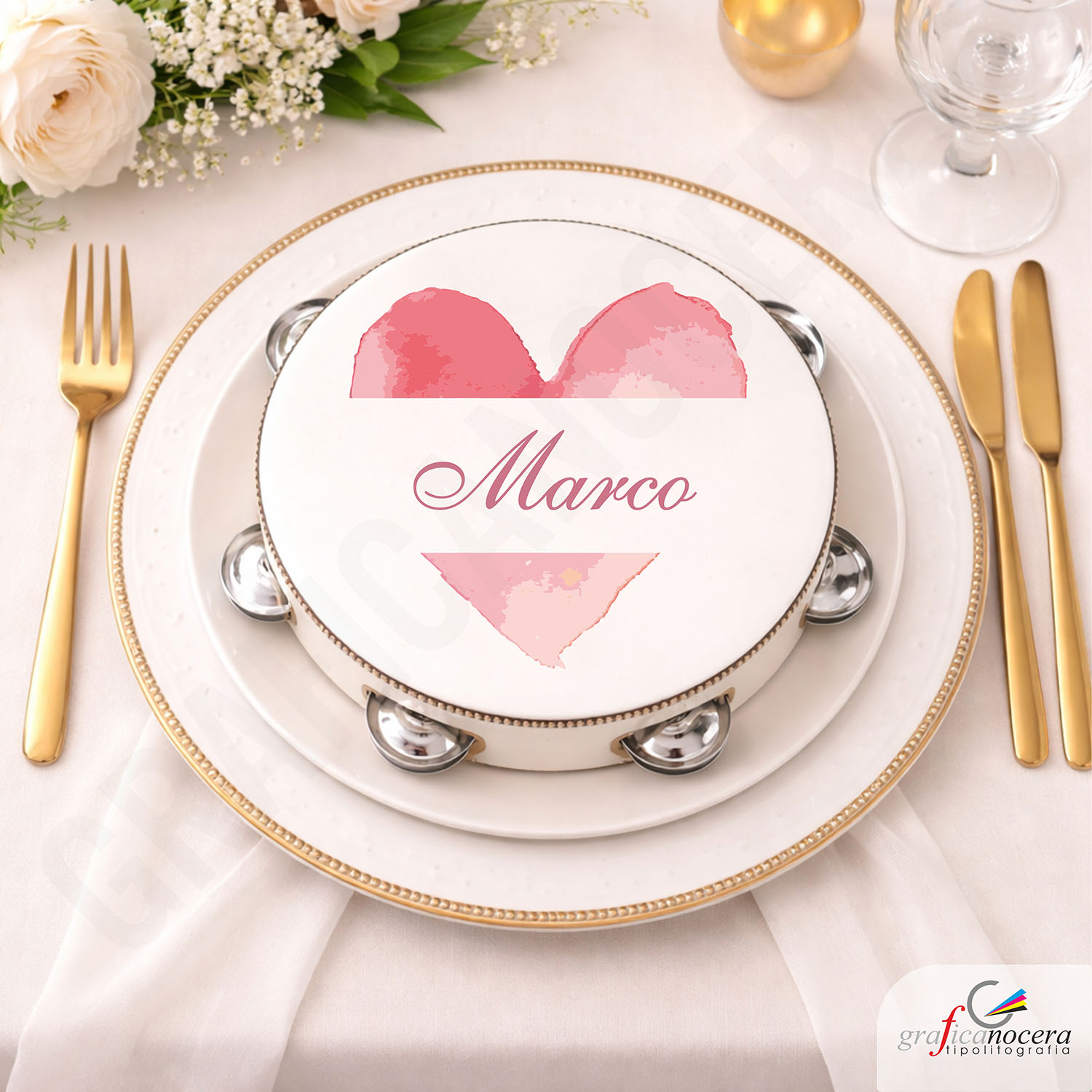 Tamburello in legno, realizzato con cura artigianale e personalizzato con la tua grafica.