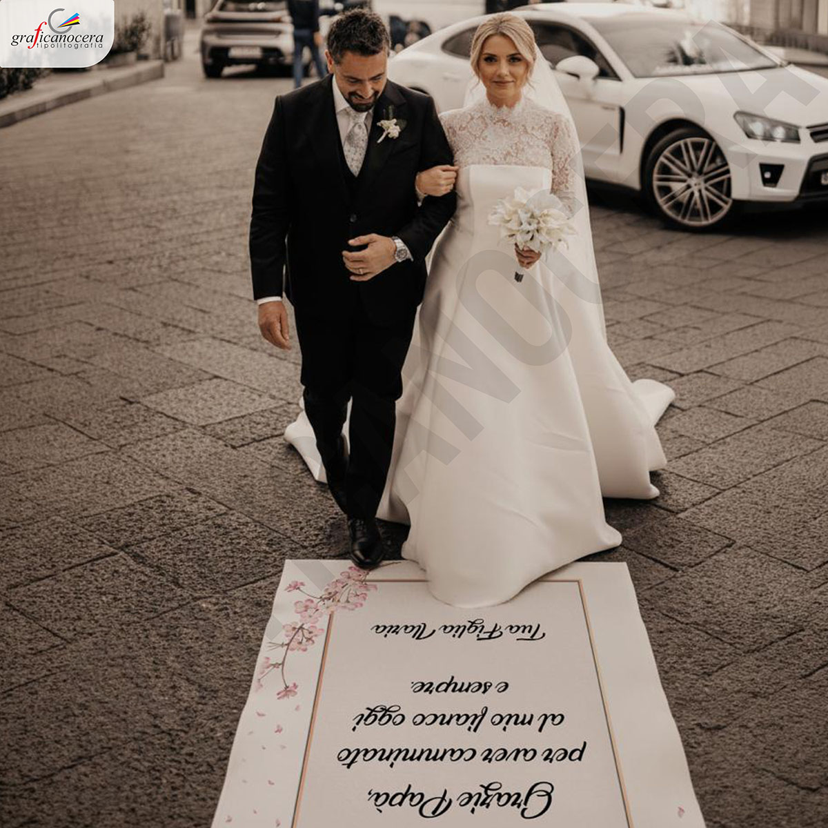 Rendi ancora più speciale il momento in cui percorri la navata con un tappeto personalizzato, stampato in altissima definizione e realizzato al 100% in Italia da esperti artigiani.